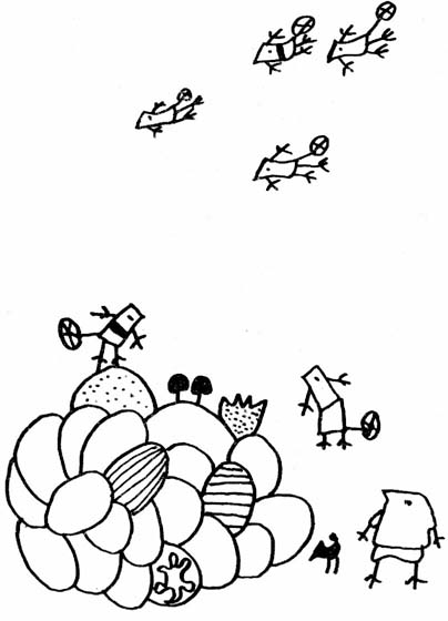 Чику си запретна ръкавите, провери всички яйца от колекцията си, от едно паешко яйце излязоха сто паяка и продължиха да излизат още, но ние можехме да броим само до сто, та останалите не броихме. Всеки случай те бяха много повече от сто. Паешка работа -- каза Чику, старовремска работа! Една птица никога няма да тури сто врабчета в едно яйце, та да се бутат вътре, да се застъпват по краката или да се блъскат с лакти, както хората се блъскат в трамваите.