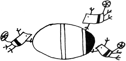 Пешеходецът, който си подсвирква с уста разказа, че тръгнал през житата да дебне нова буболечка, подсвирква си най-безобидно с уста и шпионира всяко стъбло и всеки житен клас, щото тъкмо там се криела буболечката. И както шпионира. стига до чучулигите. Чучулигите натуряли качулки по главите си, една важна чучулига пристъпва на пръсти, кипри се, около нея голяма шетня, все я стягат нещо, все й оглеждат перата дали са здрави и всички говорят за полета. Пешеходецът доближава до тях, продължава да си подсвирква с уста и подпитва разсеяно за какъв полет става дума. Ами че до слънцето -- казват му чучулигите. -- Нашата чучулига ще лети до слънцето и обратно.