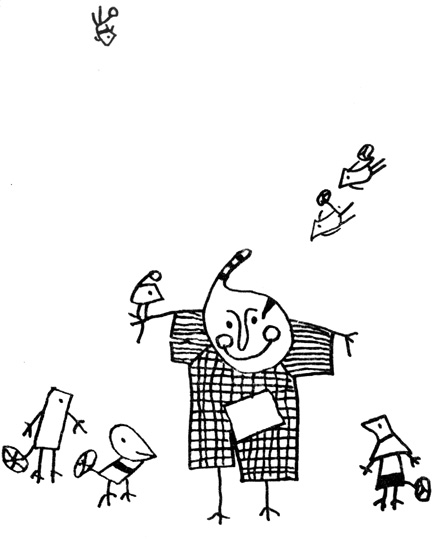 Той стана, за да почне да сее, а ние пак пикираме над нивата и бръмчим с все сили: "Бжъъъ!". Оня се отказа да сее, седна отново в браздите, почеса се по врата и мълчи. Пешеходецът, който си подсвирква с уста отново отиде, мина най-нехайно покрай него, уж че случайно минава оттам, изшпионира го и се върна при нас. Мълчи и се почесва, каза ни Пешеходецът, сигурно нещо измисля. Когато един човек се почесва, това ще рече, че той мисли. Човекът не е като врабчето да мисли, без да се почесва. Човекът, колкото повече се почесва, толкова повече работи може да измисли. Нашият Пешеходец се движи само из пешеходния свят, затова познава всички пешеходни тънкости. Та той ни убеждава, че човекът в нивата е зает с измисляне и че всеки момент ние сме щели да видим какво е измислил.