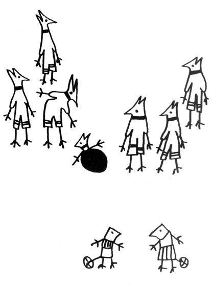 Двамата с Врабка опитаха да си направят гнездо, Гаврош дори донесе две пръчки и ги кръстоса, но Врабка изпадна в скука, гледаше тя меланхолично двете пръчки, омърлуши се и рокличката й стана още покъса. За да разсее нейната печал, Гаврош я поведе към млечния бар. Те се появиха отново след седмица, и двамата носеха по една опитомена сламка под мишница, и заявиха на ятото, че няма да строят никакво гнездо, защото да седнат да правят гнездо в това цивилизовано време, ще рече, че искат да се връщат назад в старовремските работи. Оу! -- рече печално Врабка. Те си отнесоха сламките към млечния бар в града, а ние продължихме своята работа.