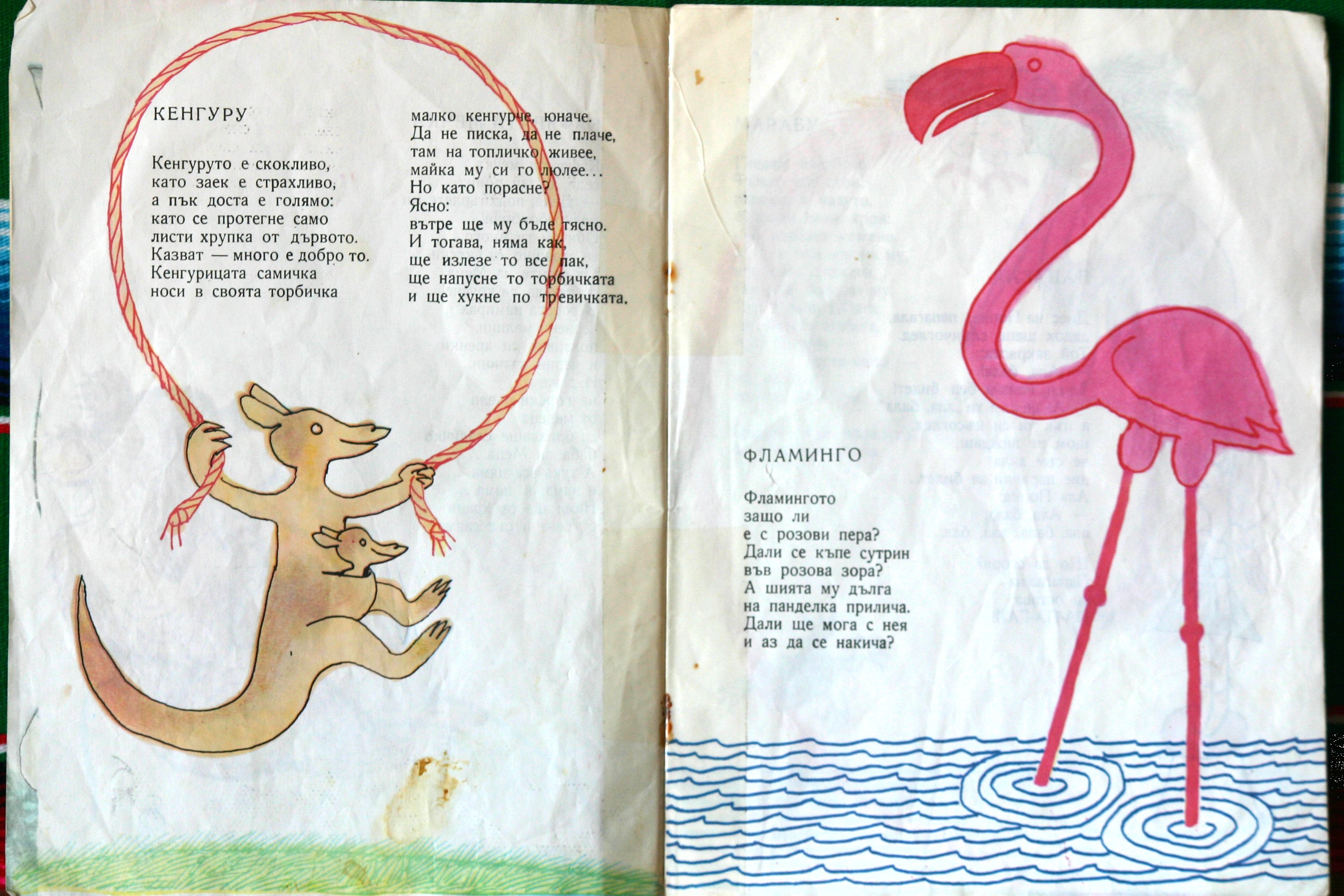 ФЛАМИНГО Фламингото защо ли е с розови пера? Дали се къпе сутрин във розова зора? А шията му дълга на панделка прилича. Дали ще мога с нея и аз да се накича? |