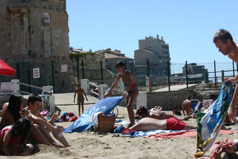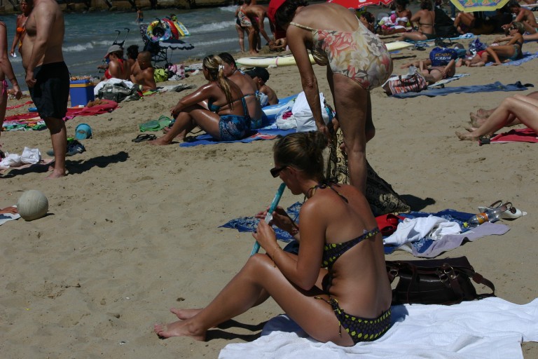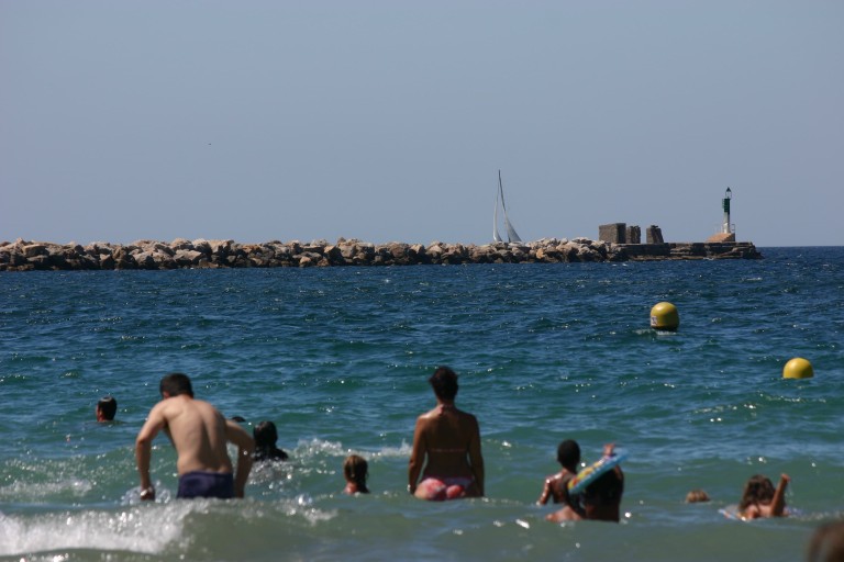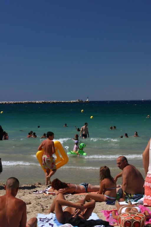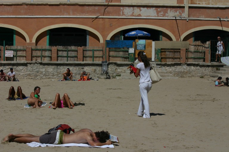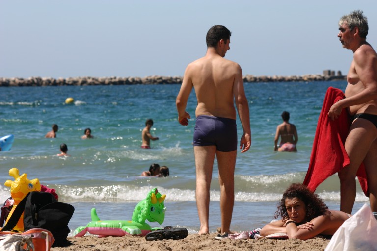 нещо като централнийо градски плаж (plage catalana?). чадъри, шез-лонг-и и пр. 5лв/на/мутра/на-час - няма такива работи.