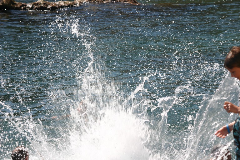 тия монголоиди дойдоха отнейде, едни други подобни им подадоха каса бира от камъните, и отидоха да си пият. пяната отзад е от "мотора" - друг монголоид с плавници