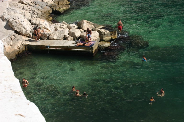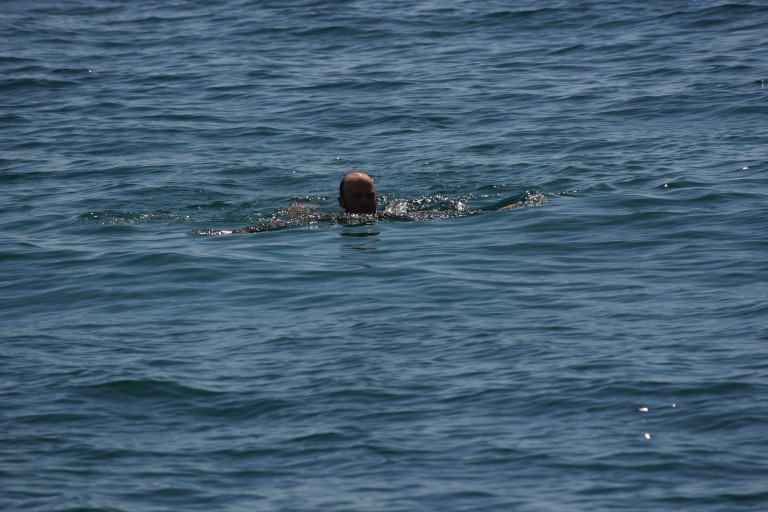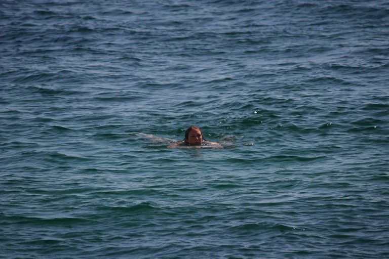 тази дървена рампа в дъното до стената е "личен плаж" - за 5Е лежиш на 3кв.м.дъски