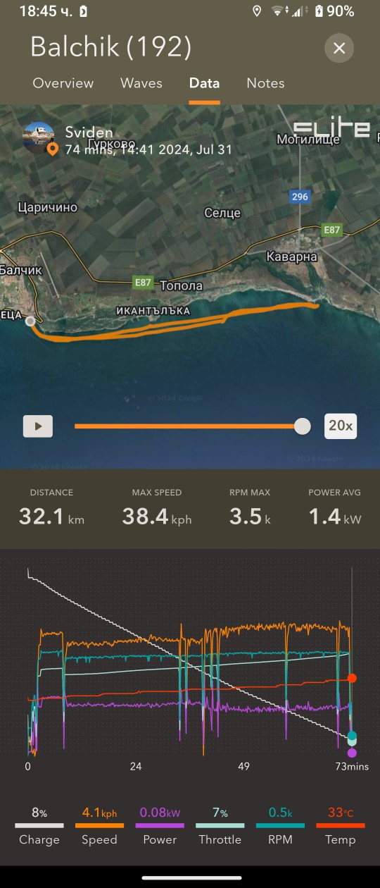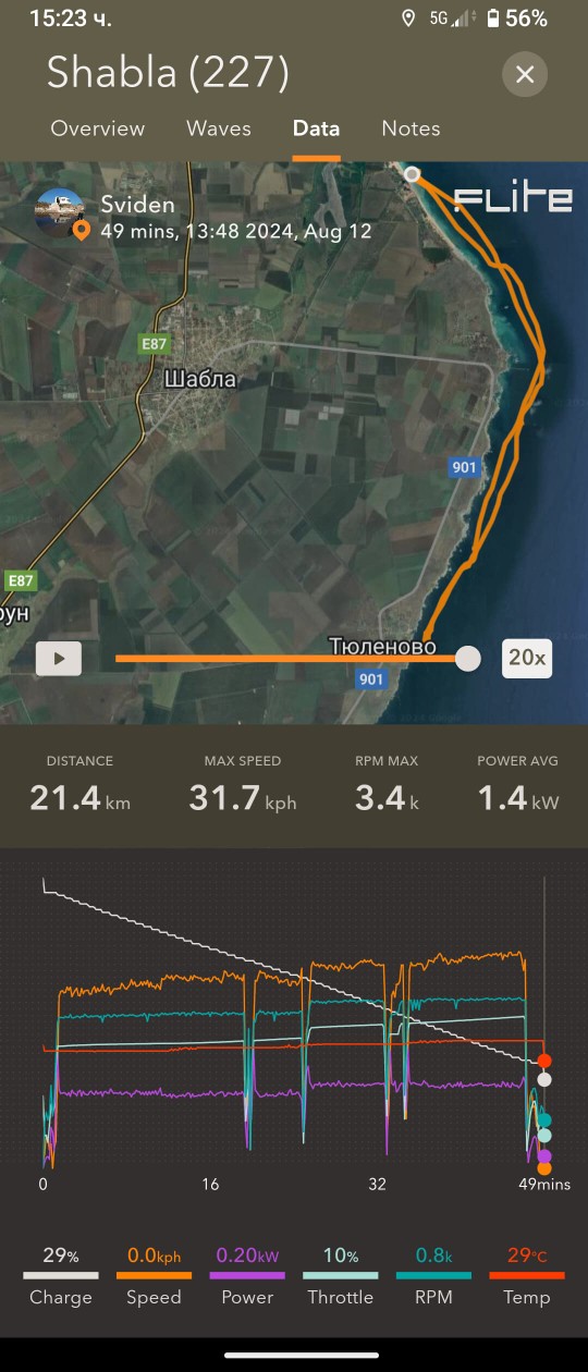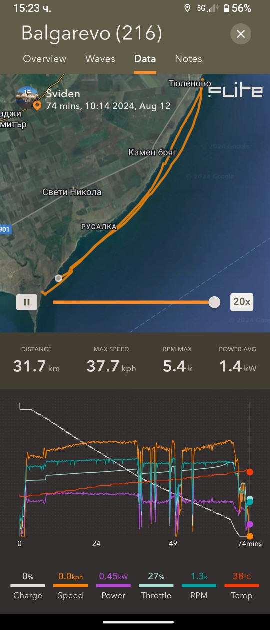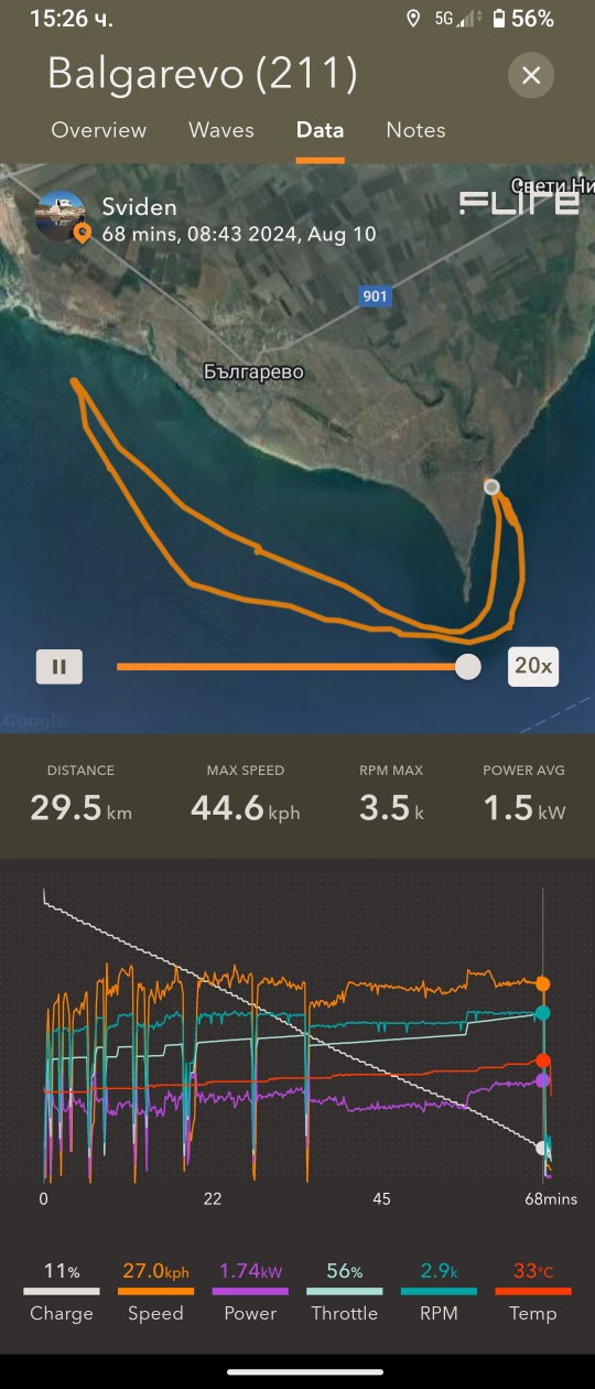 И, някои преходи излязоха мнооого дълги/енергоемки и не стигна тока - последния километър Тюленово-Болата ми отне още час да бутам дъската с 0% ; също и накрая Фичоза-Шкорпиловци :/